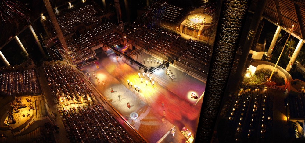 La experiencia Xcaret at Night en el parque temático ecológico Xcaret arranca con el más famoso espectáculo musical de México: Xcaret Mexico Espactacular. Los más de 300 artistas en escena te sorprenderán con un viaje animado por la historia de México y la cultura maya dando vida a las coloridas tradiciones mexicanas en el Gran Teatro Tlachco en el parque temático ecológico Xcaret.